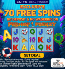 Grab yourself 70 FREE SPINS with no deposit and no wagering on fan favourite Fishin' Frenzy. If you love slots with personality, this one brings a lively spark from the first glance, so step into the colourful, nautical energy of Fishin' Frenzy with a top deal of 70 free spins with no deposit and no wagering.