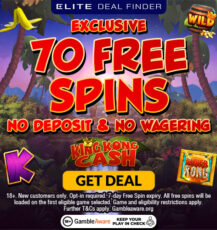 Unlock an exclusive 70 Free Spins, no deposit and no wagering required, and enjoy them on the hugely popular King Kong Cash slot. Sign up now to access even more free spin deals and handpicked casino bonuses from trusted brands.