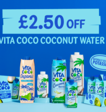 For a limited time only, you can get £2.50 cashback when you purchase any Vita Coco Coconut Water product. Vita Coco is made from fresh coconuts, naturally hydrating and packed with electrolytes — perfect for a refreshing boost at home, the gym, or on the go.